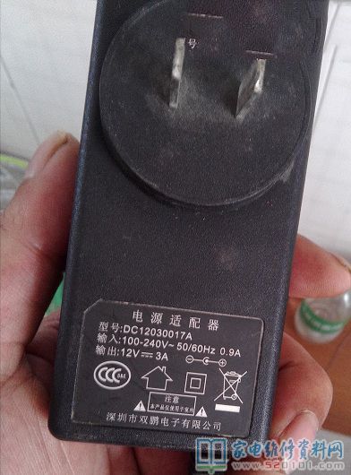 我们看看这个电视是由这个12V电源适配器独立供电的,如下图所示。
