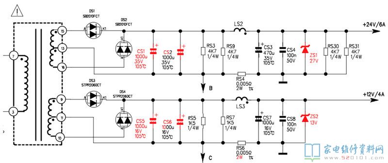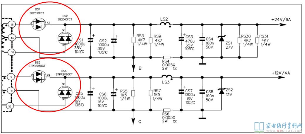 十七、PWL37电源板的输出整流电路分析