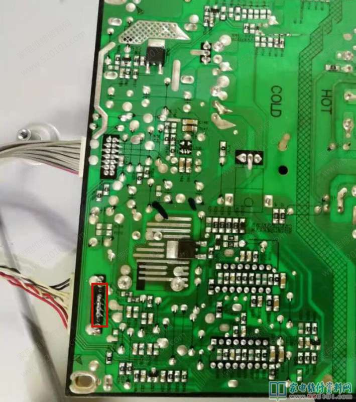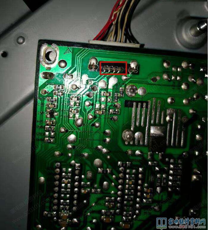 技改过程其实很简单,就是把灯条的接口四个回路点短接就可以了,下图是未改过的接口。方框内四个点短接就行。