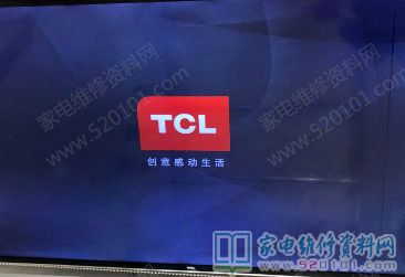 接修一台55英寸TCL智能液晶电视,故障现象是开机后卡在开机TCL LOGO画面处不动,按键(仅能开机)及遥控失灵,按网上说的各种方法无效。最后按住开机键(电视机按键)后上电,系统开机并初始化,开机成功。