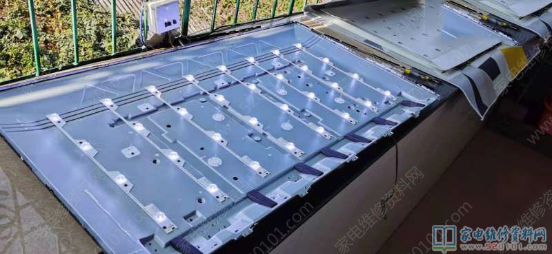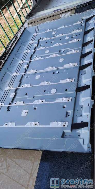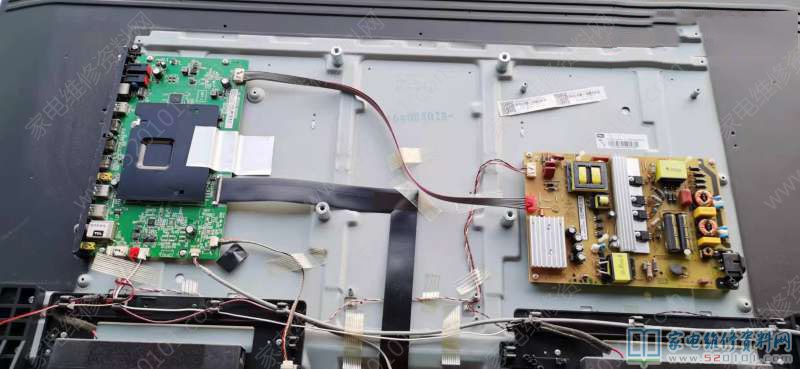 接修一台TCL D49A730U液晶电视,此机器采用的是MS828机芯,故障现象是开机声音图像均正常,不到10分钟图像消失,声音一直正常,在强光下细心观察,能看到暗暗的活动图像。根据现象,可以判断是背光问题,要么灯条损坏、要么背光电路出故障。
