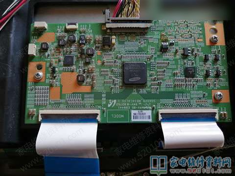 看现象不是逻辑板坏就是屏坏,总有一个出了问题。打开电视,分别拆下屏的两根排线做实验,发现取下右边的排线。