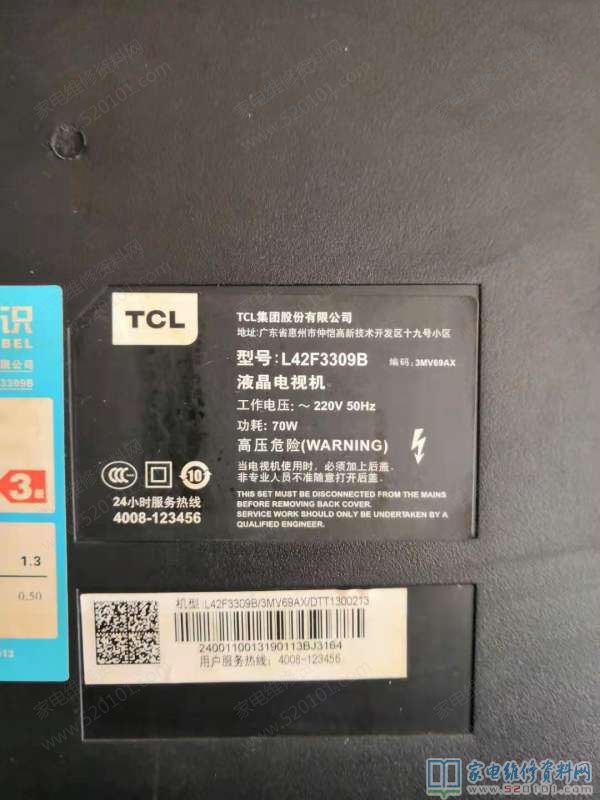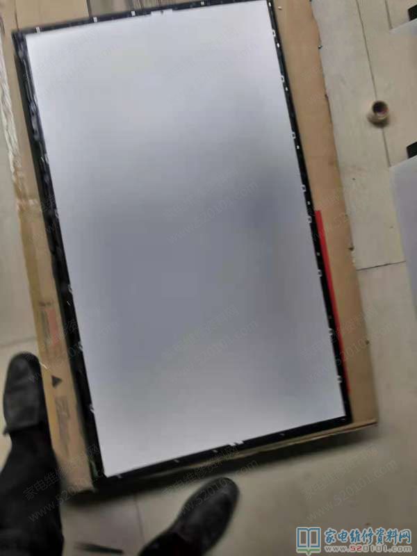 接修代理商送来的的2台TCL L42F3309B液晶电视,其中有一台故障反馈是开机半小时左右黑屏,开机观看,发现屏幕光纤不均匀,甚至4个角明显稍暗,其实这里有误判现象,实际是电视内部很脏,甚至灯罩反光板也很脏,包括里面的硬塑胶板都一样,实在想不通,灰尘是如何进到里面去了,当时告知灯条故障,等灯条到货就迫不及待拆屏更换。