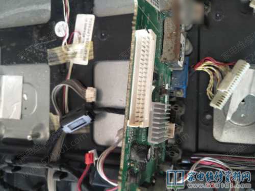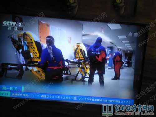 接修一台TCL L48F3320-3D液晶电视,故障表现为当画面出现黑底时,出现红色并伴有横条纹。画面没有黑底面显示基本正常,画面只要有黑色或蓝色处,出现红色。最后查出是排线问题,更换逻辑板没有改变,互相拔掉屏幕一半排线实验,故障现象一样。检查主板排线插座,发现有腐蚀现象,清洗后图像正常。