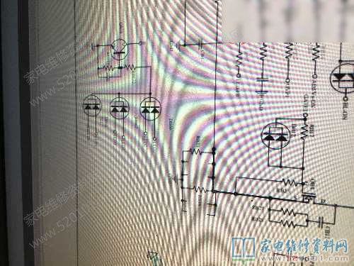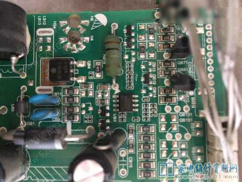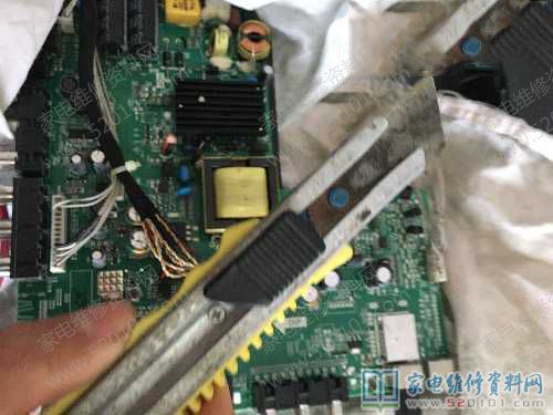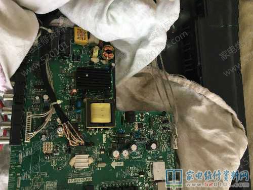 接修一台乐华LED32C560液晶电视,故障表现为背光闪烁,拆机测试背光电压不稳定,测试仪测试灯条都能亮,电压也比较一致。此机是电源背光一体板,继续测试,输出24V、12V电压正常。背光芯片OB3350CP的12V供电不正常。查图纸得知12V供电由2小贴片三极管控制,开启电压BL-ON,测得有2.8V,基本正常。发现BL-ON电压经过电阻RB131后有个B电压,此电压已经接近0。查图纸发现此b电压有液晶灯条反馈控制,可下拉为0。于是直接隔断b电压。电视恢复正常。
