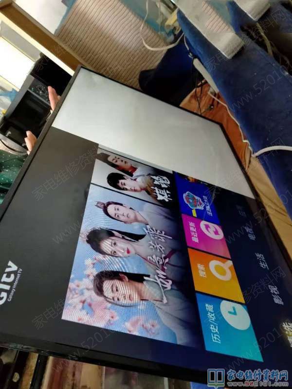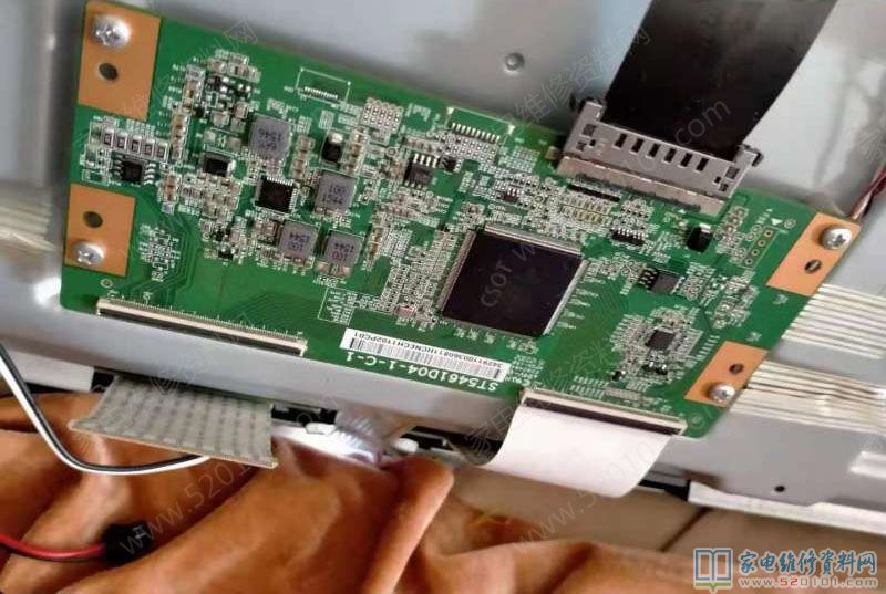 后来请教师傅,说此故障为华星屏的通病,断V形缺口中的Y供电(坏屏那边),如果有暗影,竖条,束竖带,撕掉坏屏那边的耳朵,如果上述现象还没有解决,短接逻辑板R184的焊盘,如果还不行,买一块技改后的逻辑板就可解决,但是用技改后的逻辑板会引起图像偏色的现象,但不影响收看。