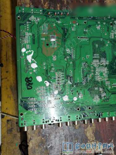 接修一台TCL液晶电视,型号是LCD37B66-P,故障表现为有声无图,背光不亮。用户反应出现故障的时候,说有一次又正常开机了的,电视买了十多年了,花费不大就修。首先开盖检查,电源板各组电压输出正常,没有电容鼓包。怀疑背光板不良,拆开背光板屏蔽板,检查背光板输入电压,发现背光开关控制端没有开启电压。检查主板输出端口,同样也没有电压。查阅维修手册,此电压由CPU输出后,经过Q11、Q12后输出到背光板上。经查,发现Q12集电极与主板输出端口间断路。用段导线从Q12集电极飞线到输出端口,通电试机,机器恢复正常。