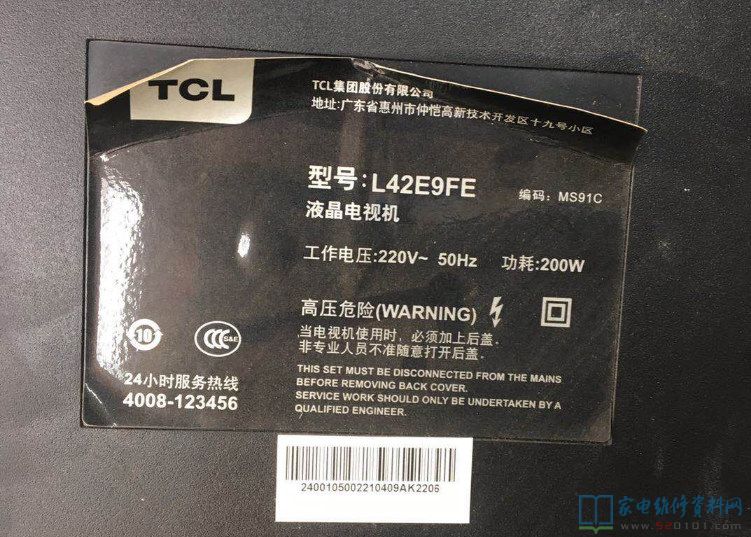 近期接修一客户送来的一台TCL液晶电视L42E9EF,故障现象为右边有一竖细线,还有黑带,图像有时有拖尾,时间放久了有时会正常,时有时无!叫售后看了认定为屏坏,现在换新机子,这台拿来让我修一下试试看,不行就当垃圾扔掉。