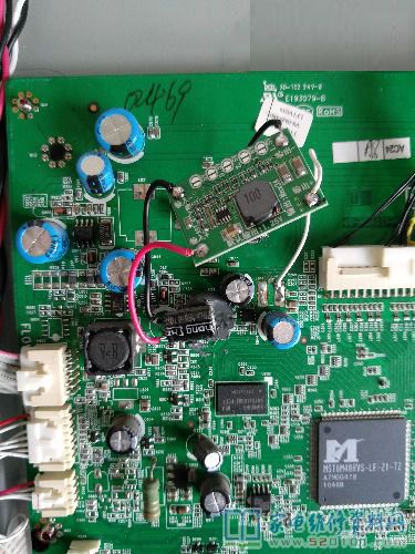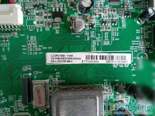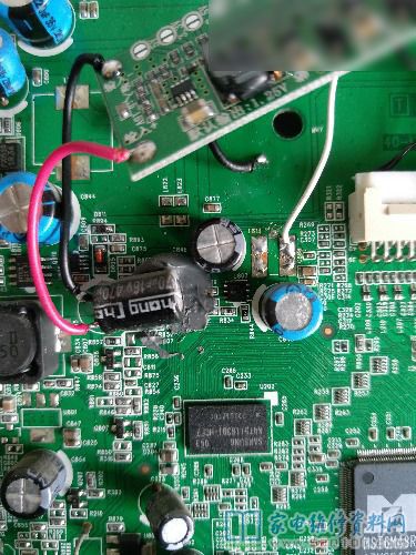 接修一台TCL L32P21BD液晶电视,故障表现为通电指示灯不亮。拆开机器,电源板上24V,3.3V都有。检查主板,先淘宝上买了个数据刷机换上无效。测量主板上的电压,u803的输出只有0.7V。再看看芯片旁边一大坨的黑胶,八成就是这个“发财胶”惹得事。也不知道这个正常应该是输出几伏电压,刚好在手头有稳压模块,芯片供电一般也就是1.2V,1.8V,2.5V,3.3V几种。先试1.2V,接好后通电,红灯亮了,故障修复。