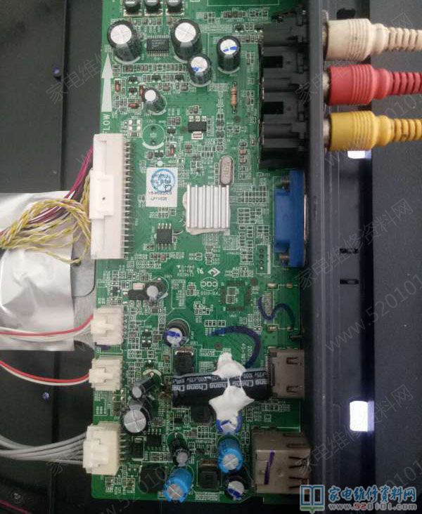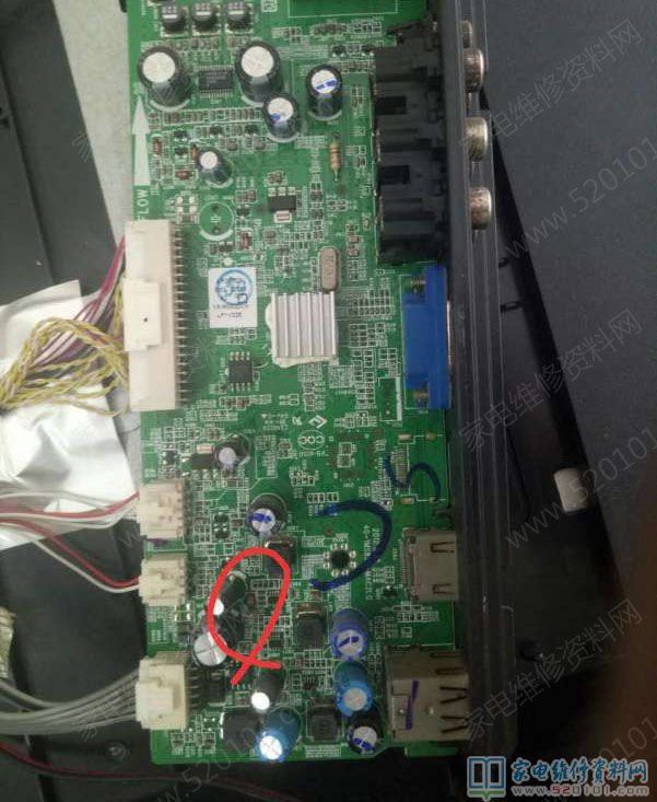 接修一台乐华LCD42R18A液晶电视,故障表现为开机红灯亮,无图也无声,经查24V,3.3V正常,有开机信号,大电容355V,拆主板的时候发现主板下边的铁板有一部分较热,就用手摸了下相应部分,很正常的被烫了一下,仔细查看发现一贴片有一小点变色,找个大个子换上去之后通电试机一切正常。