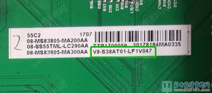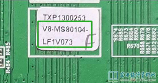 TCL的软件代码标识一般为V8-XXXX的格式,如图2所示,此板出厂时软件代码为V8-MS80104-LF1V073,后面的LF1V073代表的是编译版本,数字越大版本越新,所以我们查找软件时,一般找V8-MS80104就可以了。