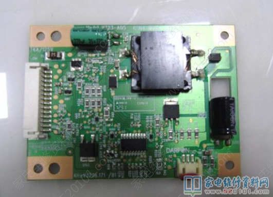 接修一台TCL 32E5020E液晶电视,拆机检查,这个机是同行转修机,已经换了电源板,灯条,反复变化,修烦了转给我,拆机测试24V是23.8V,恒流板C227上是140.9V左右,感觉偏高,不可能超过140V,前面是23.8V,这个应该低于140V,故障出在恒流板,朋友不信,换上恒流板后,反复试机正常,故障修复。