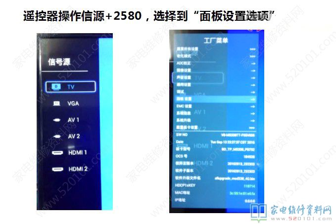 TCL 3MS338AX机芯液晶电视花屏的故障维修 2021-12-15 01:00:34 阅读 654 次 评论 0 条 摘要: 一台TCL液晶电视,采用的是3MS338AX机芯,故障表现为花屏,逻辑板换过,故障一样,上网查资料得知说可能是调错了,怎么查都查不到数据,折腾了许久,后来在某宝一看卖主板的,本想买块主板试试,问了下店家,说 一台TCL液晶电视,采用的是3MS338AX机芯,故障表现为花屏,逻辑板换过,故障一样,上网查资料得知说可能是调错了,怎么查都查不到数据,折腾了许久,后来在某宝一看卖主板的,本想买块主板试试,问了下店家,说可以调试试,这机子一恢复出厂设置之后就这样,具体调试方法如下图所示。 版权声明:本文为转载文章,版权归原作者所有,欢迎分享本文,转载请保留出处! 点赞 分享: PREVIOUS:COF边板型号8656-MC607飞线点位图 NEXT:TCL L55F3303B液晶电视灰屏的故障维修 文章导航