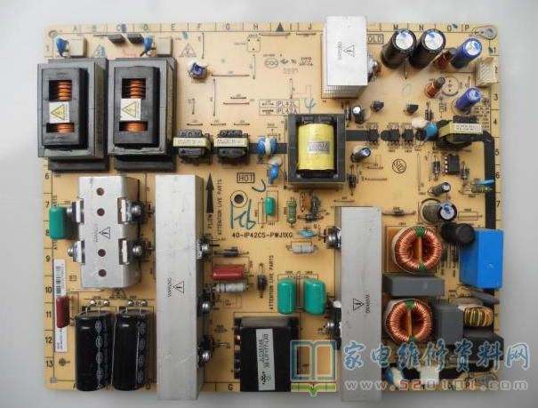 一台TCL L42F19FBE液晶电视,故障表现为三无。该机电源板型号是40-IP42CS-PWJ1XG,在路检查发现保险丝F801烧断,滤波电容C806(4.7uF/400V)漏电严重。更换上述元件后试机,保险又烧断,说明电路中还有短路点。经查,给C806供电的二极管D816以及给继电器K801供电(启动)的二极管均已击穿。为保险起见,将损坏元件及副电源芯片U801(FSQ510)一并更换后,上电试机,故障排除。