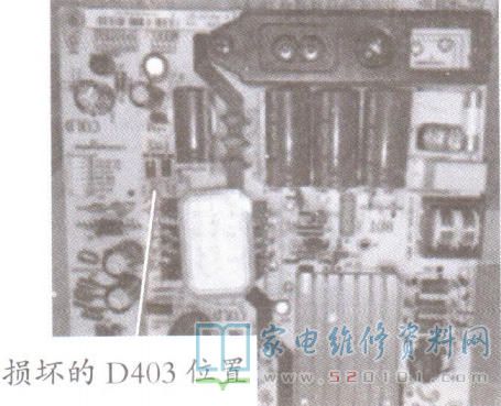 TCL L42F1590B液晶电视开机三无的故障维修 2022-03-03 17:50:37 阅读 898 次 评论 0 条 摘要: 接修一台TCL L42F1590B液晶电视,故障表现为三无。用户称在收看中机内“啪”一声响后三无。拆机检测,300V滤波电容两端电压为288V,基本正常,但开关电源次级输出电压均为0V。断电,用灯泡将30 接修一台TCL L42F1590B液晶电视,故障表现为三无。用户称在收看中机内“啪”一声响后三无。拆机检测,300V滤波电容两端电压为288V,基本正常,但开关电源次级输出电压均为0V。断电,用灯泡将300V滤波电容中的电荷泄放掉,然后在路测量次级各路电压整流二极管,发现D403击穿,将其换新(见图)后故障排除。 版权声明:本文为转载文章,版权归原作者所有,欢迎分享本文,转载请保留出处! 点赞 分享: PREVIOUS:TCL L32P1A液晶电视开机三无的故障维修 NEXT:TCL L46F11液晶电视开机三无的故障维修 文章导航