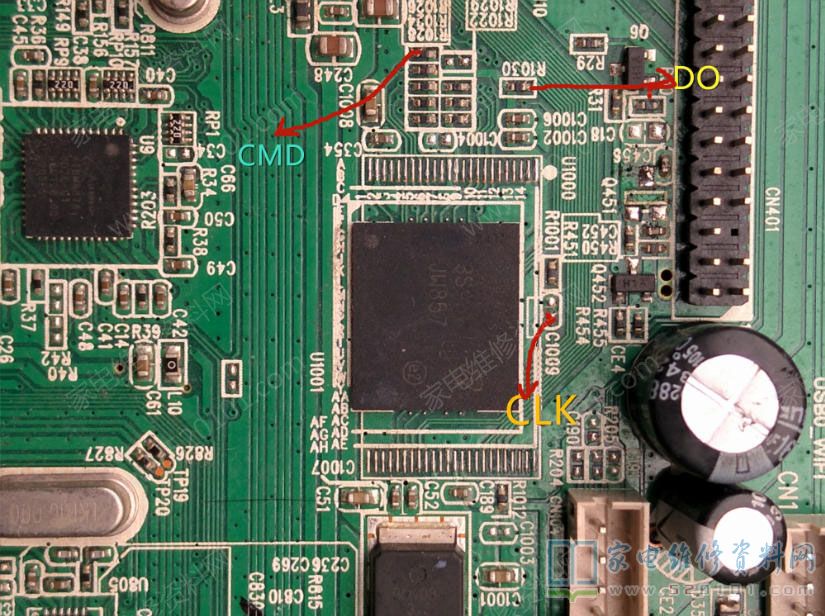 TCL液晶电视板号4704-M608T9-A5233K01 MS6A608T9 EMMC点位图 2022-04-02 21:52:14 阅读 806 次 评论 0 条 摘要: TCL 板号4704-M608T9-A5233K01 MS6A608T9 EMMC点位CMD、CLK、D0如下图所示,仅供参考。 主板全貌图如下图所示 TCL 板号4704-M608T9-A5233K01 MS6A608T9 EMMC点位CMD、CLK、D0如下图所示,仅供参考。 主板全貌图如下图所示 版权声明:本文为转载文章,版权归原作者所有,欢迎分享本文,转载请保留出处! 点赞 分享: PREVIOUS:创维液晶电视8M09机芯EMMC飞线点位图 NEXT:TCL V8-MS80104-LF1V065主板EMMC点位图 文章导航