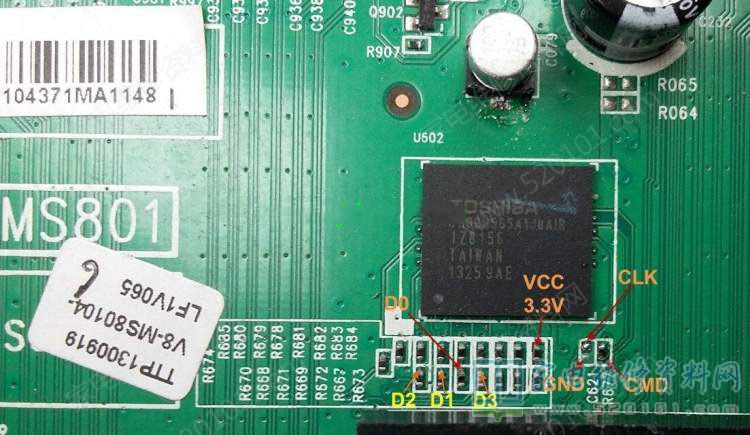 TCL V8-MS80104-LF1V065主板EMMC点位图 2022-04-02 22:00:02 阅读 848 次 评论 0 条 摘要: TCL液晶电视采用V8-MS80104-LF1V065主板的EMMC点位CLK、CMD、GND、VCC 3.3V、D0、D1、D2、D3如下图所示。 TCL液晶电视采用V8-MS80104-LF1V065主板的EMMC点位CLK、CMD、GND、VCC 3.3V、D0、D1、D2、D3如下图所示。 版权声明:本文为转载文章,版权归原作者所有,欢迎分享本文,转载请保留出处! 点赞 分享: PREVIOUS:TCL液晶电视板号4704-M608T9-A5233K01 MS6A608T9 EMMC点位图 NEXT:TCL 37E4500A-3D液晶电视(MS801机芯)EMMC点位图 文章导航