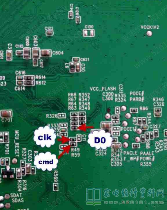 TCL L55F2880A液晶电视(MT55CA机芯)EMMC点位图 2022-04-03 18:41:20 阅读 568 次 评论 0 条 摘要: TCL王牌L55F2880A液晶电视(采用MT55CA机芯)EMMC飞线读写点位CLK、CMD、D0如下图所示。 TCL王牌L55F2880A液晶电视(采用MT55CA机芯)EMMC飞线读写点位CLK、CMD、D0如下图所示。 版权声明:本文为转载文章,版权归原作者所有,欢迎分享本文,转载请保留出处! 点赞 分享: PREVIOUS:TCL LE48D8800液晶电视(4704-M608T9-A5233K01板)EMMC点位图 NEXT:TCL L50F3700A液晶电视(40-MT55C主板)EMMC飞线图 文章导航