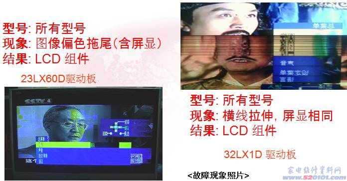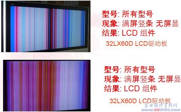 特点:LCD驱动板、LCD接口电路、LCD板出现的干扰、线、带是连续的