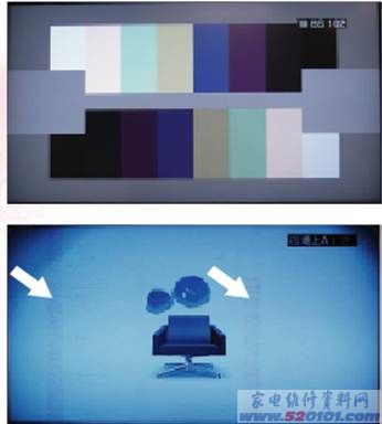 3)检查存储器:如更换数字板后,闪存XU2要重新写入相应程序,否则可能出现花屏。当帧存储器U7、U8有故障时一般出现花屏,雨状干扰,满屏竖线。