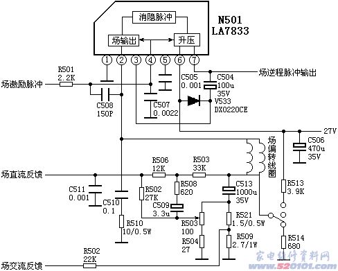 LA7833/LA7830是较常见的场扫描输出集成电路,一般用于25及25寸以下的彩电中。