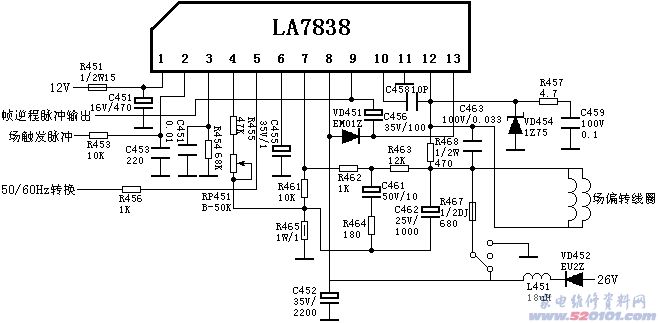 (LA7837也可参考此电路,两者的区别仅在于输出电流不同)
