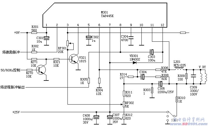 5脚:0.5V——50/60HZ转换场幅稳定控制端(50HZ:L 60HZ:H)