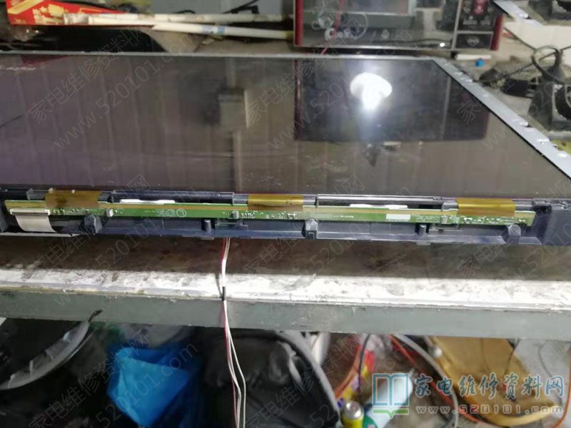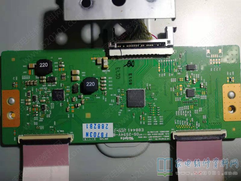 接修一台TCL L42F1300-3D液晶电视,故障表现为灰屏,通电开机灰屏有背光,按键遥控正常。怀疑屏的问题,此机屏逻辑板为LG L470EUN-SEF1 3D 60HZ,测得VIN:12V,VGH:0V,VGL:-4.9V,HVDD:0V,VDD:0V,电压异常,表打阻值VDD对地阻值为0,断到屏体FPC线,测VDD不再短路,由此判断屏体故障,拆屏测边板上每一路滤波电容发现有一电容C121对地短路,更换此电容,通电故障排除。
