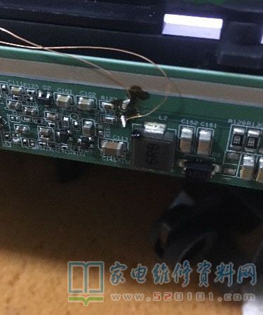 最近回收了一台TCL液晶电视,故障是灰屏,将机器拉回维修部,检查12v供电工厂,vgl-2.4v偏低,gvh无电压,用烧机方法,外接可调电源24v,发现边膜冒了烟 ,仔细一看是线路冒烟,不是模块冒烟,找到线路图飞线后故障修复。