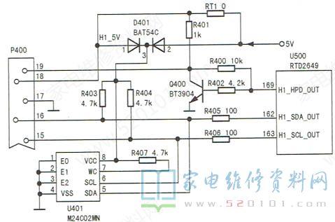 TCL L42F1590B液晶电视HDMI无信号的维修 2022-05-13 19:45:24 阅读 1162 次 评论 0 条 摘要: 接修一台TCL L42F1590B液晶电视(RT49机芯),故障表现为不能播放机顶盒输出的HDMI高清信号。该机的HDMI接口部分电路如图所示。根据故障现象分析,故障原因可能是P400 18脚的5V电压、1 接修一台TCL L42F1590B液晶电视(RT49机芯),故障表现为不能播放机顶盒输出的HDMI高清信号。该机的HDMI接口部分电路如图所示。根据故障现象分析,故障原因可能是P400 18脚的5V电压、19脚的5V HPD信号或15、16脚的总线信号异常。重点对以上引脚进行检查,发现P400 15脚虚焊。将15脚补焊后试机,故障排除。 版权声明:本文为转载文章,版权归原作者所有,欢迎分享本文,转载请保留出处! 点赞 分享: PREVIOUS:TCL L42F1570B液晶电视灰屏的故障维修 NEXT:TCL L48F1620E液晶电视热机状态下无声音的故障维修 文章导航