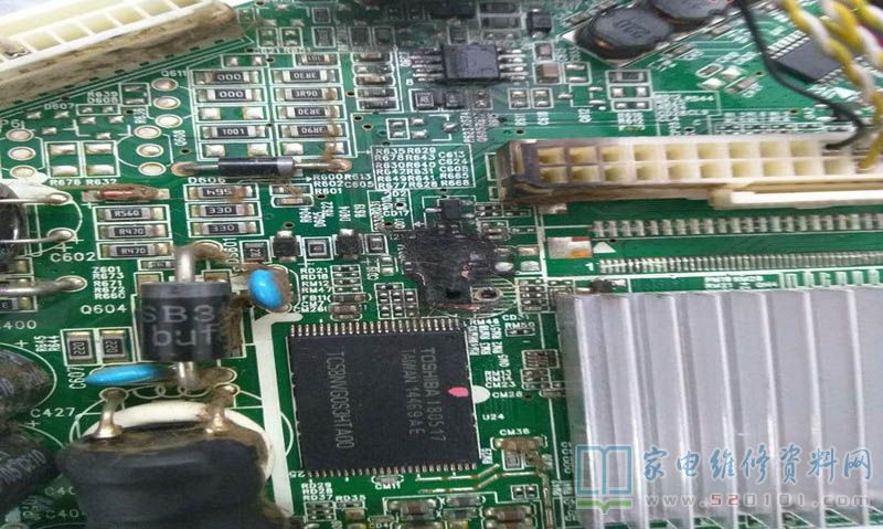 最近接修一台乐华32H100液晶电视,其主板烧的严重,去网上看了一下二手板在150-200元之间,价格并不便宜。经过几天的查资料和反复对比,烧掉这块是个MOS及外围元件,作用是开机时MOS导通为边板供12V,旁边的5V只是个测试点。