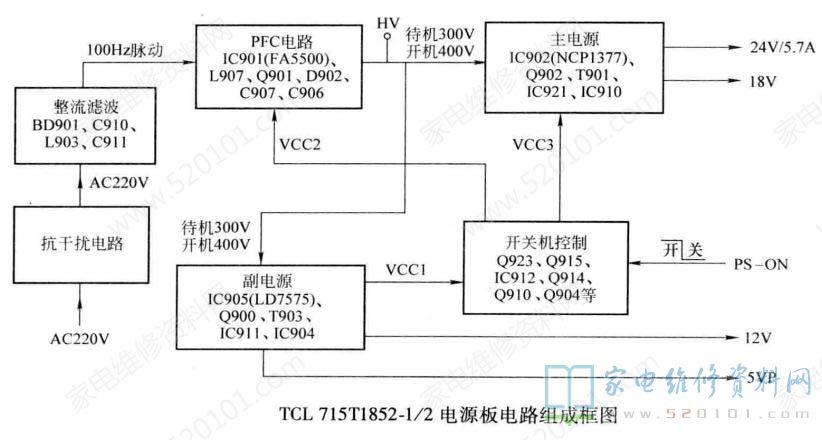 TCL 715T1852-1电源板电路原理和维修图解如图3所示。