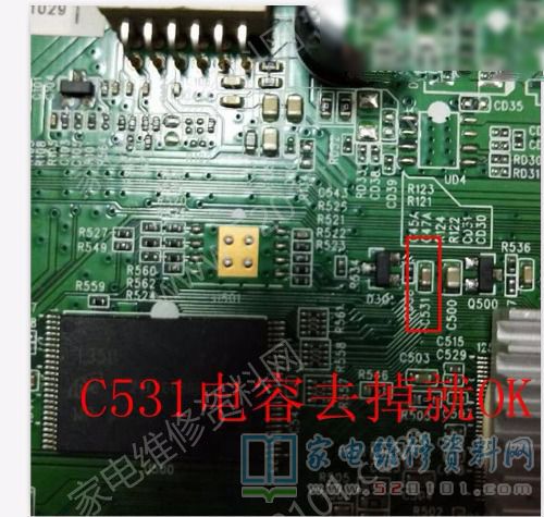 TCL D39E161液晶电视开机一会儿自动关机的通病故障维修 2022-07-01 06:56:29 阅读 1556 次 评论 0 条 摘要: 关于TCL D39E161液晶电视开机一会儿自动关机通病故障,解决的方法是将下图中的C531电容去掉即可。仅供大家维修参考。 关于TCL D39E161液晶电视开机一会儿自动关机通病故障,解决的方法是将下图中的C531电容去掉即可。仅供大家维修参考。 版权声明:本文为转载文章,版权归原作者所有,欢迎分享本文,转载请保留出处! 点赞 分享: PREVIOUS:康佳LED32S3360CE液晶电视自动关机的故障维修 NEXT:暴风电视用U盘改屏参的方法(图) 文章导航