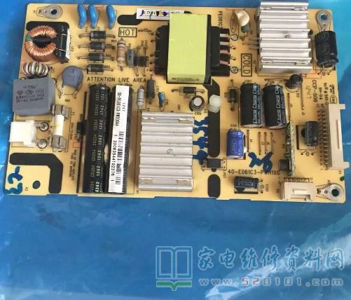 接修一台TCL L32F3320B液晶电视,故障表现为三无故障,红灯不亮,开盖测电源板输出P2插座3.3V和24V端都为0V;测24V整流DS1输出端24V正常,因电源板24V输出受控于主板,3.3V不正常会影响主板的正常工作,查整流DS2两端电阻几乎短路,焊掉DS2测正常,测其正极对地电阻还呈现短路状态,拆掉3.3V小板,短路消失,查小板发现C1短路,用220uf/16V电解电容替换,插电红灯亮,按开机键屏幕点亮,测电源板输出的3.3V和24V正常,接上信号源声图正常。