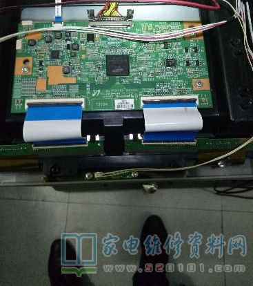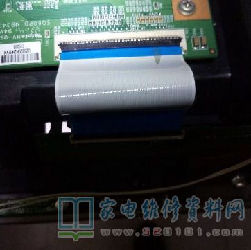 液晶电视,故障表现为冷机正常,几分钟后图像跳动重影,修过几台TCL 48英寸电视透明胶带隔离逻辑板到屏边板左排线第16-21线即可。打开后盖取下进屏左排线找到16-21线位置透明胶带隔离,试机图像照样跳动,没有解决问题,关机取下左排线试机,图像照样跳动,修过多台类似TCL48电视都是这样修好的,怎么和以前不一样了,后来我安上左排线,取下右排线试机图像不在跳动,试着用透明胶带隔离右排线,当试到隔离右排线第15-19(由右相左数)线试满副图像正常不在跳动,长时间试机图像画面不再跳动。
