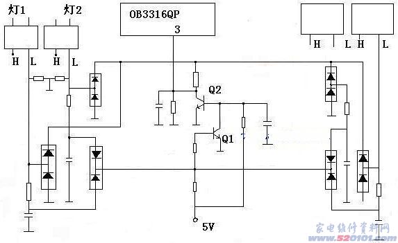 今修一台电视试将OB3316QP的3脚接地去保护不成功,后将Q1的BE短接,灯管点亮,如下图所示: