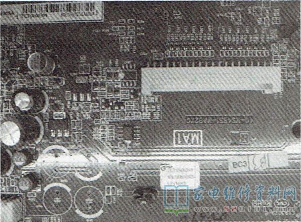 接修一台TCL L32P21BD液晶彩电,有声音,无图像,背光亮。因有声音、背光亮,判断电源正常,故障点应该在主板或逻辑板电路中。先试拔下上屏线,用橡皮擦拭触点后,故障依旧。开机后用万用表测量逻辑板的供电,电压为0V(正常值应为12V);拔下上屏线,测量主板上的上屏电压输出端电压,仍为0V,判断主板上的12V .上屏电压电路有问题。检查发现,Q813是上屏电压开/关管,位于上屏线插座旁边,如图1所示。从连接关系看,Q813应是一只场效应管。测得输入端有12V电压,但输出端电压为0V,估计Q813坏了。因看不清楚Q813的型号,所以无法更换,于是直接短接其输入与输出端后试机,出现TCL字符,接上信号,图像、声音均正常。