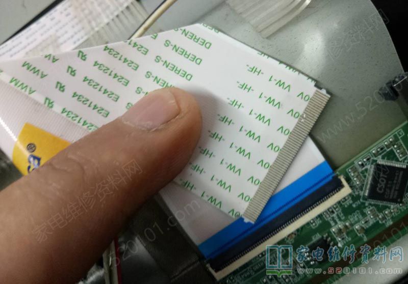 开机检测后发现左半屏能够正常显示图像,于是便头疼医脚,断开连接排线的从左到右第12和第14根线,试机图像已恢复正常。