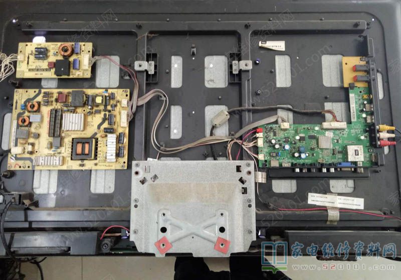 接修一台乐华LED39C710K液晶电视,故障表现为二次开机后指示灯熄灭,屏上没有任何反应。今天早上拆机维修,检测电源板时,根据板上边标示电压,发现开机后24伏只有21V,58V只有48.9V,于是便在电源板上折腾了许久,后来以无果告终。