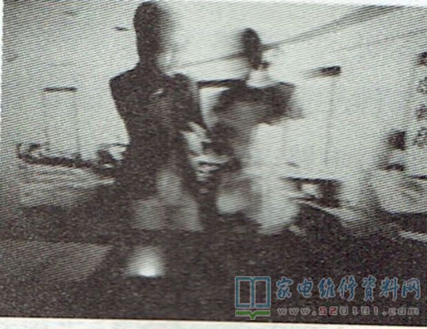 接修一台TCL-L46E5000-3D型液晶彩电,字符与静止图像正常,但运动图像拖尾,如图1所示。根据故障现象分析,判断逻辑板有故障。测得逻辑板(型号:MT4761B01-1-C-2)的工作电压及DC-DC变换所得电压均正常,由此判断时序处理电路有问题。网购同型号逻辑板换上,故障排除。