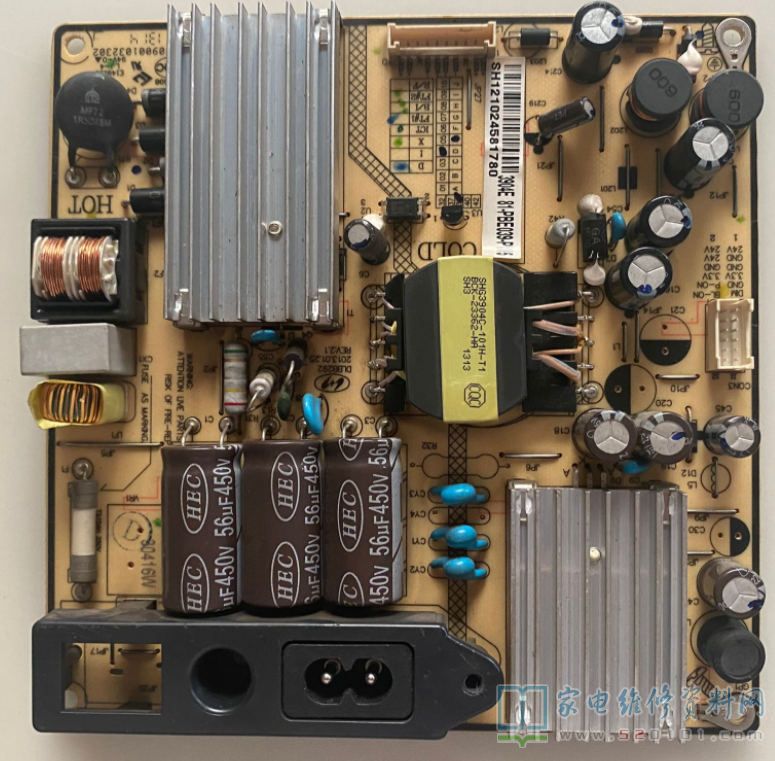 接修一台TCL L42F1510B彩电,开机时屏亮一下,马上黑屏。开机测得主板、电源板各电压正常,BL-ON、R-ON电压正常,看来应是屏灯板或供电驱动有问题。测LED1电压在60多伏,LED1~LED4电压在10V~25V之间波动,测IC29(MPS1304)供电正常,更换IC201后试机,故障排除。