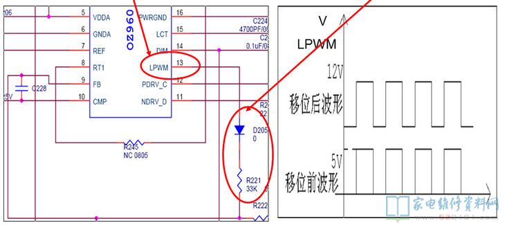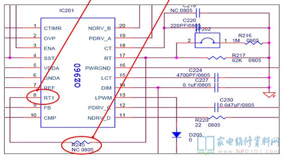 PWM驱动控制电路由PWM驱动控制IC及外围电路组成,其核心电路是PWM驱动控制IC。目前不同种类的背光板,所用的PWM驱动控制IC也不同,如奇美26/30寸用OZ960、友达37寸用OZ964、三星40寸用DMB8110D、奇美42寸用OZ9928SN、三星46寸用MSC1691A1等等。不同种类的PWM驱动控制IC管脚数量及功能排序可能不同,但管脚功能大同小异,下面介绍PWM驱动控制IC常见的管脚功能。