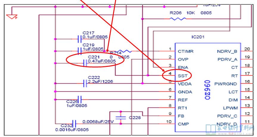 该脚为软启动脚,外接一个电容到地。IC加电后对该脚外接电容进行充电,充电到一定电压后IC才会启动工作。这样减少了电源启动时对灯管及其它元器件的电流冲击,保证了电路的可靠性。