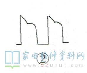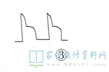 此时用示波器测得Q401的c极波形如图2所示,而正常波形如图3所示,怀疑电阻R413或电容C419有问题改变了波形。用万用表测得电阻R413的阻值正常,用一个容量为1500pF的电容替换C419后,行推动管c极的波形恢复正常,行管电流也降为正常值。经过几天观察,一切正常,至此故障彻底排除。