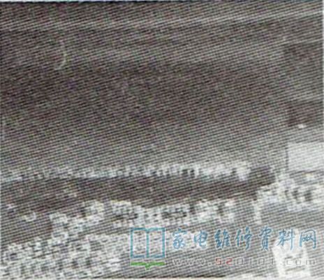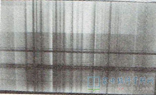 接修一台46英寸的TCL L46P10FBEG型液晶彩电,只要一搬动电视,屏上就出现水平与垂直线,如图1所示;关机后再开也时有花屏,如图2所示,有时图像正常。