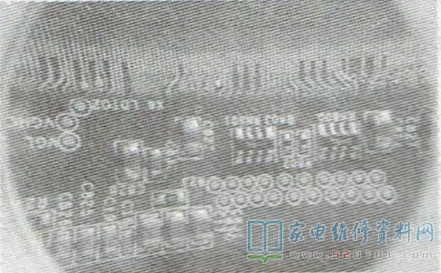 拆机检查,发现在图像正常时,只要一扭动边框故障就出现,难道屏幕边框连接线不良?拆下边框,用手逐一按边框上的COF排线,当按到右边第一块时故障出现,反复试验后确定该排线与边框相连处接触不良,如图3所示。