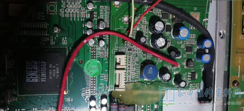 接修一台老款的TCL LCD40B66P液晶电视,故障是不定时死机重启,检查发现主板的供电5V不稳,用普通的5V转换块代换不了,功率小,用户还着急要,没办法了找了一个旧板子隔了一块DC-DC,接到24V,转成5V,故障修复。