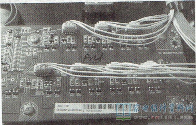 接修一台TCL L32F3320B液晶电视(机芯:MT27),背光不亮。拆机后测背光供电与背光开信号均正常,目测也没发现背光板有明显损坏的地方。逐个拔掉灯条插头试机,如图1所示,当拔掉P606后背光亮了;用正常的灯条插入P606灯座上背光亮,这说明背光板是好的。测该插座对应灯条线间的电阻和正常的灯条的电阻一样,于是决定拆开屏检查LED灯珠,拆屏后发现灯条上有只像贴片二极管的元件,并在LED灯珠上的,分析可能是过压保护管,去掉这只二极管试机,背光正常,测灯条上供电为22V。在旧CRT板上拆来一只33V稳压管,装上长时间试机,一直正常。