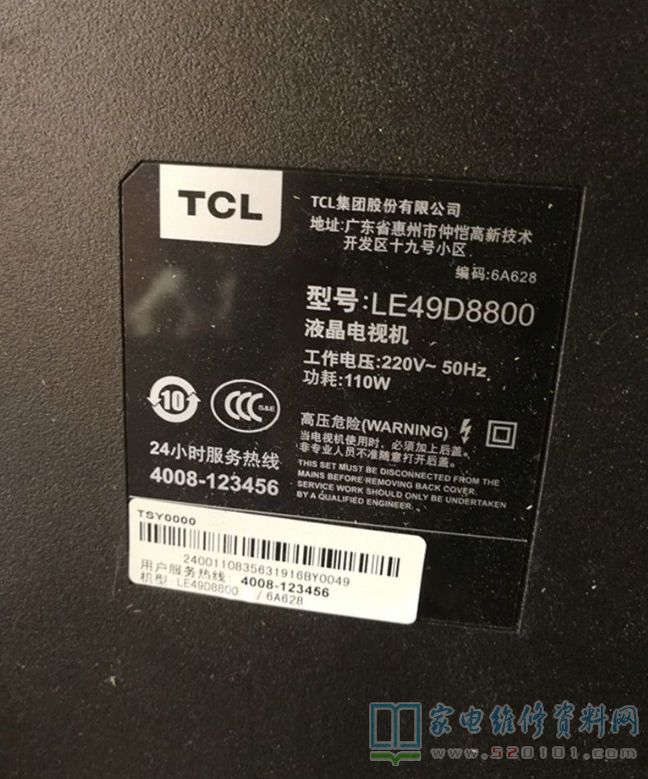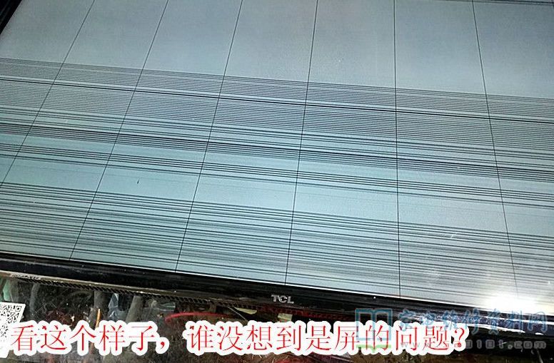 接修一台TCL LE49D8800液晶电视,故障现象:有声音,无图像,屏幕灰色,同时有水平线和竖线(如下图所示),此机生产年份不是很久,看屏日期是2016年11月,用户说在之前也曾出现过一次这样的现象,但那时是保修期,厂家拉去修过一次。