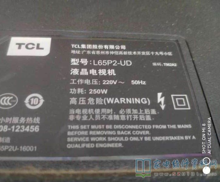 接修一台TCL L65P2-UD液晶电视,故障表现为不定时黑屏幕,网上搜寻这款机器这类故障非常多,几乎没有一位查出真正原因。我通过观察发现电视机几乎都是在图像变暗,而且是非常暗的时候就黑屏幕了,我分析应该是背光电路出现了过压保护,为了不让电视机出现屏幕太暗,于是去掉了主板到电源板ADMIN,又对灯条对地电阻三个10欧去掉一个,电流从原来300多MA降到200MA。后来试过有时候还是要黑屏幕,分析这种电视机好像背光要受图像变化控制,后来将背光控制PDIM断开强制接入1.5V固定电压,现在无论如何电视机也没有保护了。